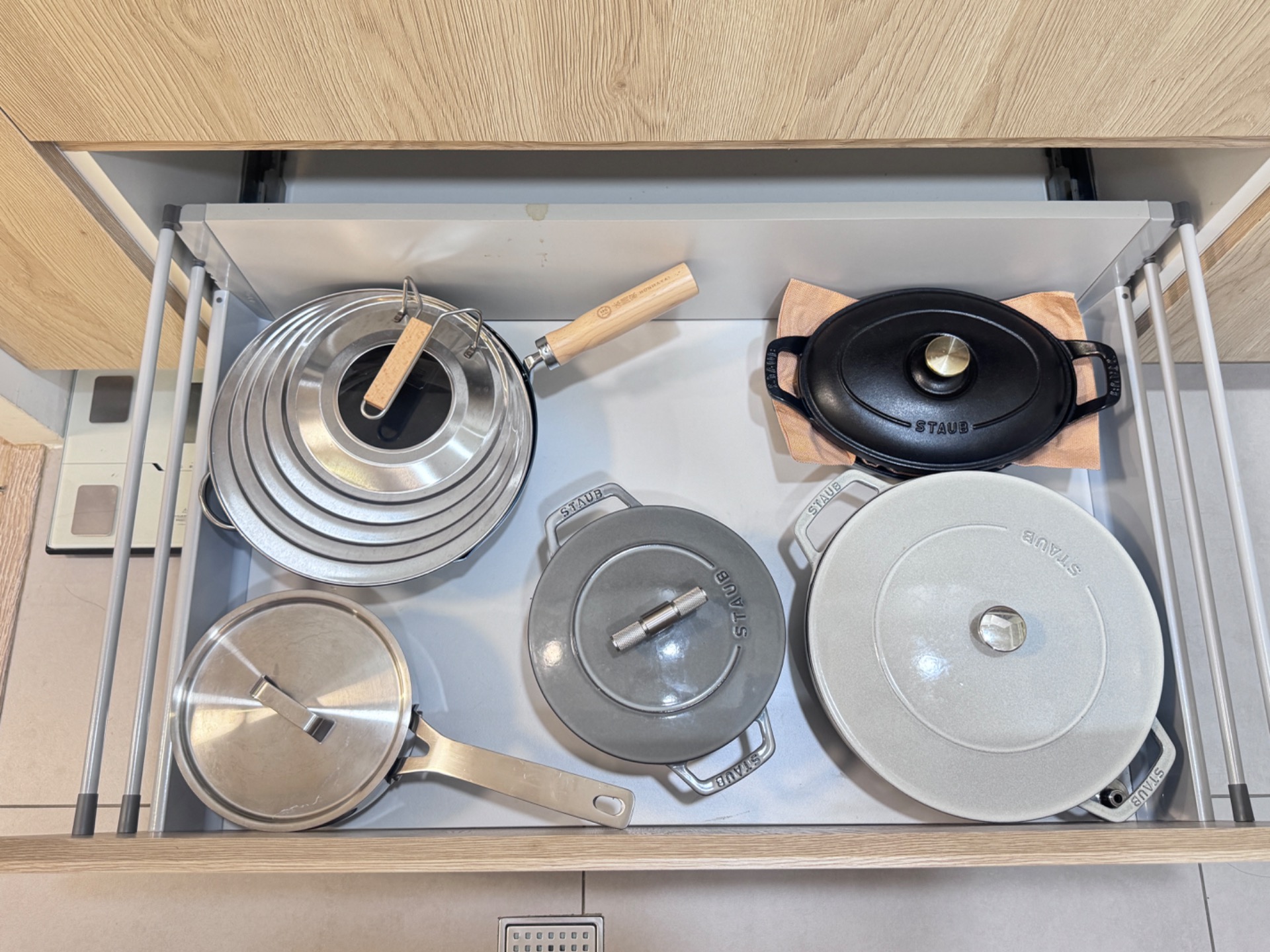 最大體積的工具就是鍋具,設計好專屬區域, 不再手忙腳亂。